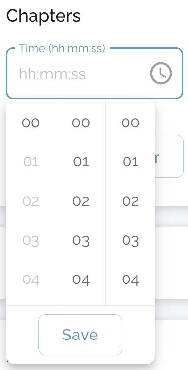 Introduction The admin user can add timestamps or chapters to videos. With these chapters the user can highlight some specific moments on the video. Adding Timestamps / Chapters to Videos Timestamps are added under each video's management page: ...