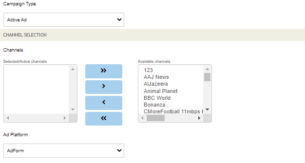 Under Campaign Management in Icareus Suite, user can create either a SwitchIn or ActiveAd type campaign to be used with Adform.