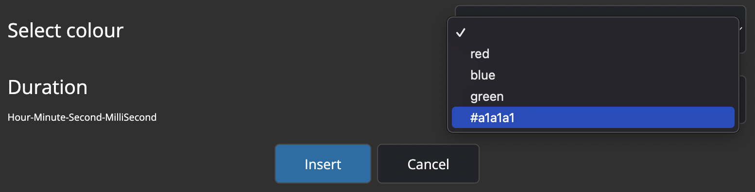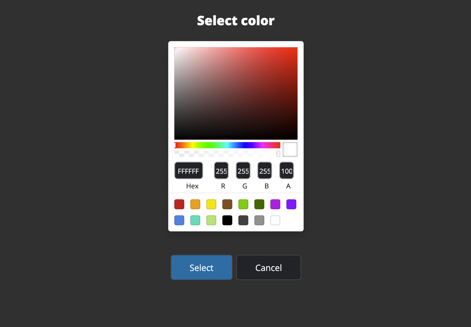 You can enter the color as a hex code in the text field, or click the "Select" button to open the color picker:
