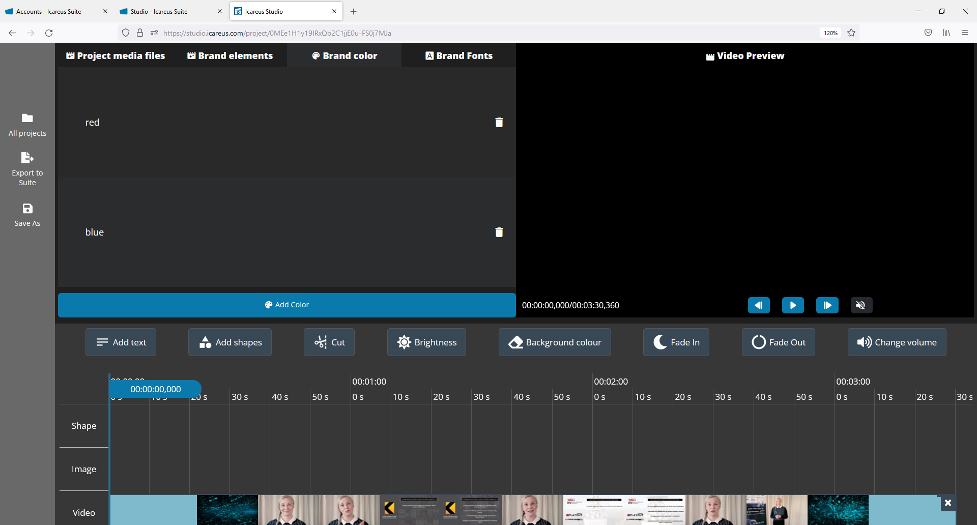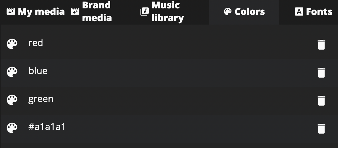 The concept of the brand colors is that all the users can use and include the common brand colors to all the videos so that they follow the brand guidelines of your organization.