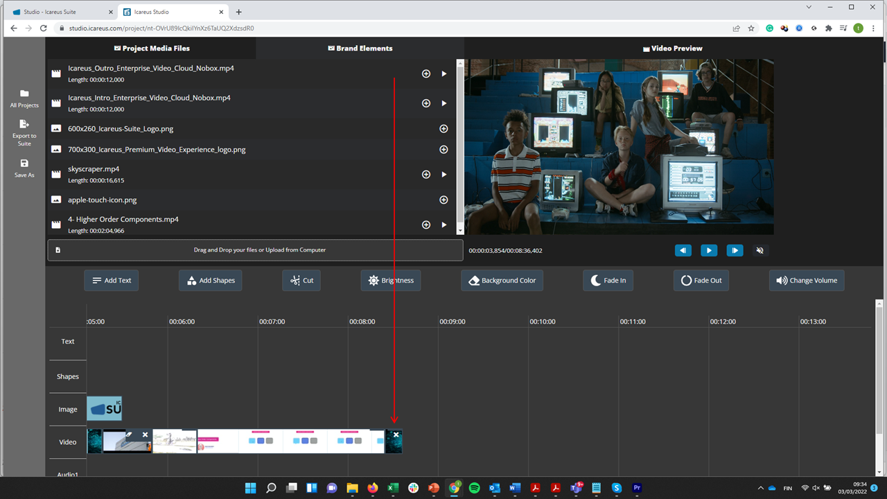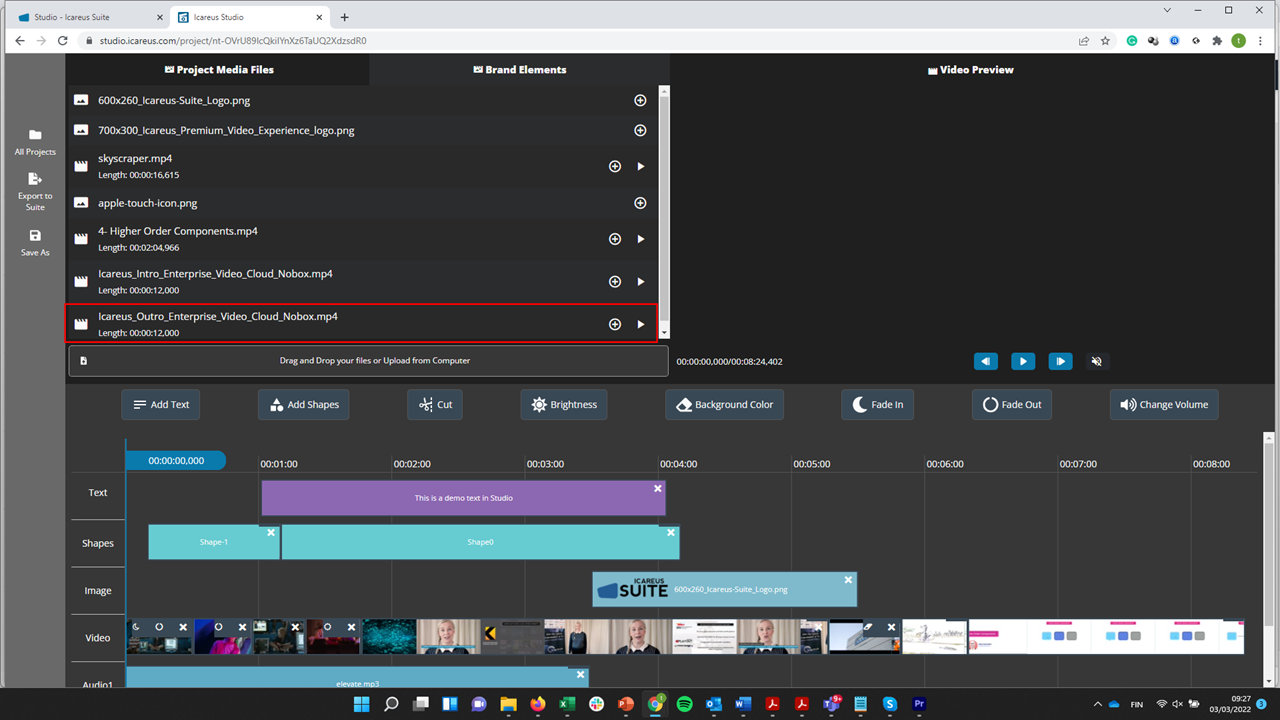 After that the brand element appears in the video / image / audio timeline depending the file type: