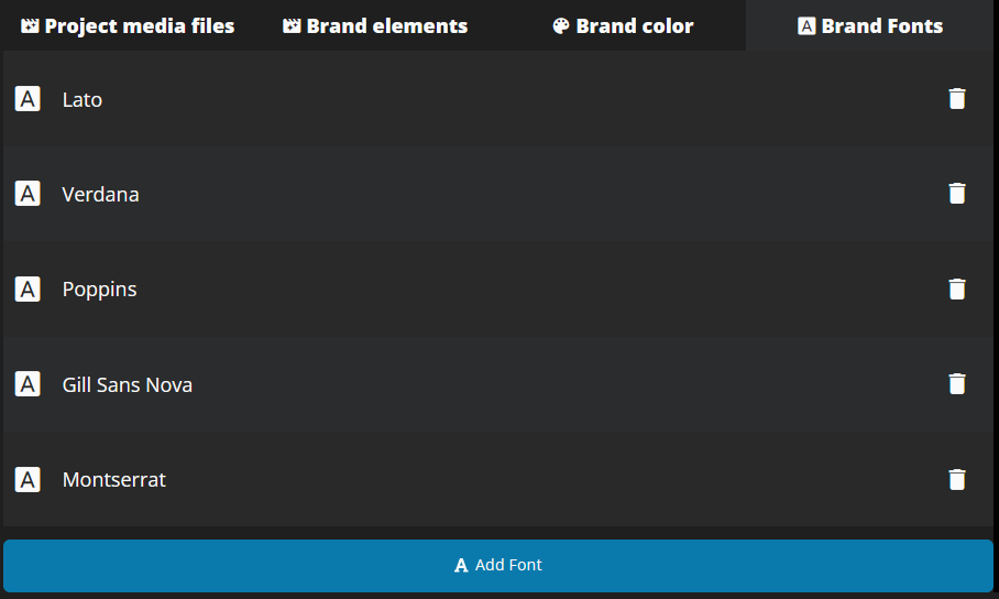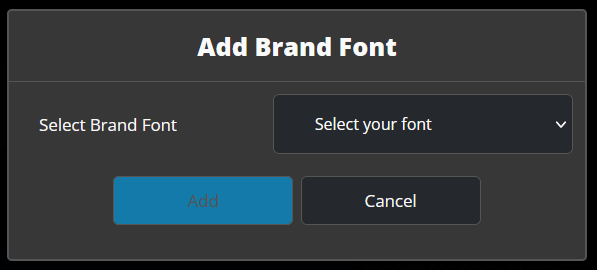 After the wanted font is selected and the user has clicked "Add", it will appear on the brand font menu: