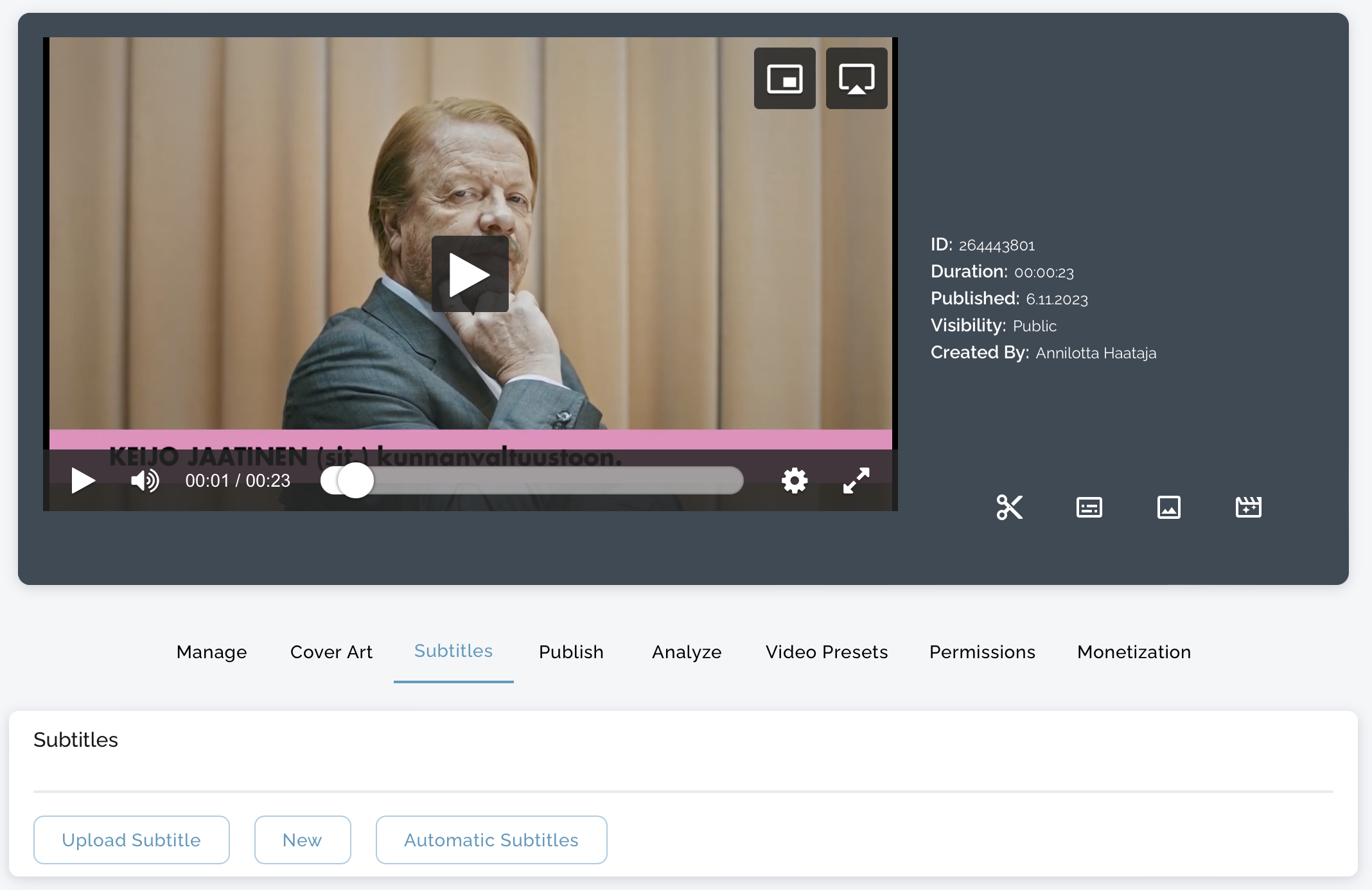 - Use the automatic subtitle generation AI tool to generate raw/unrefined subtitles that can be further manually edited with the subtitling tool