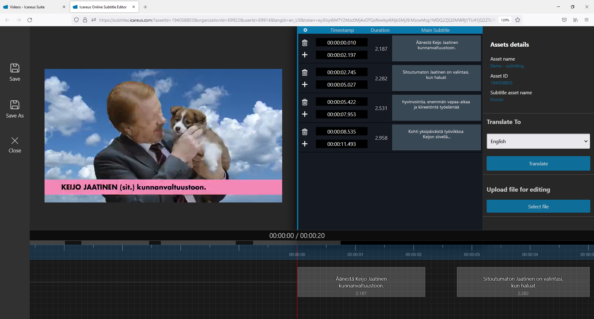It will open the Icareus Subtitling tool with the chosen video and subtitle file.