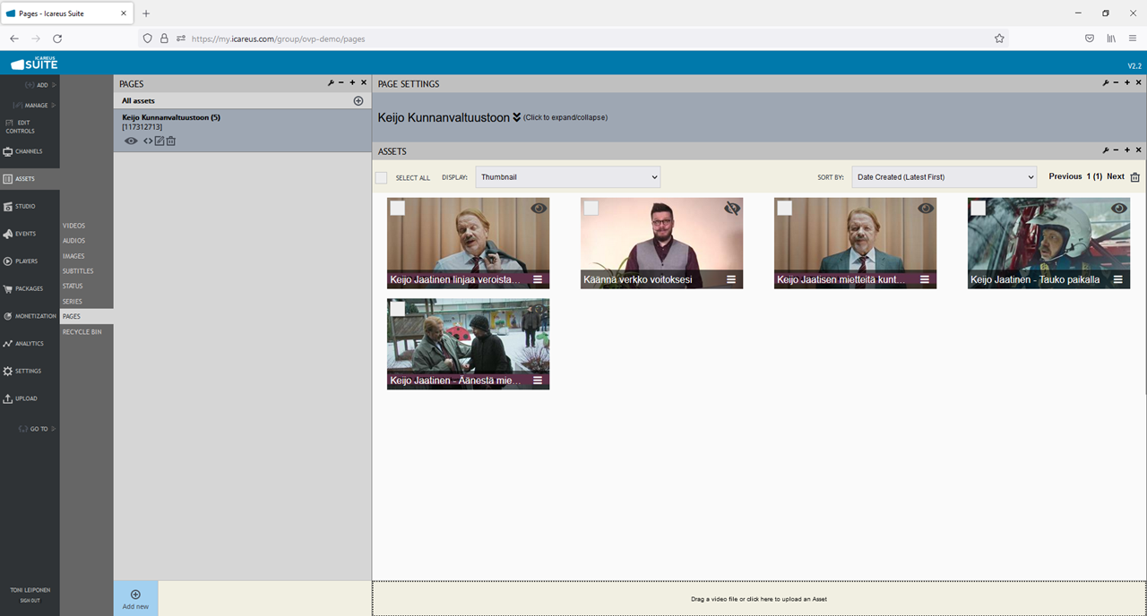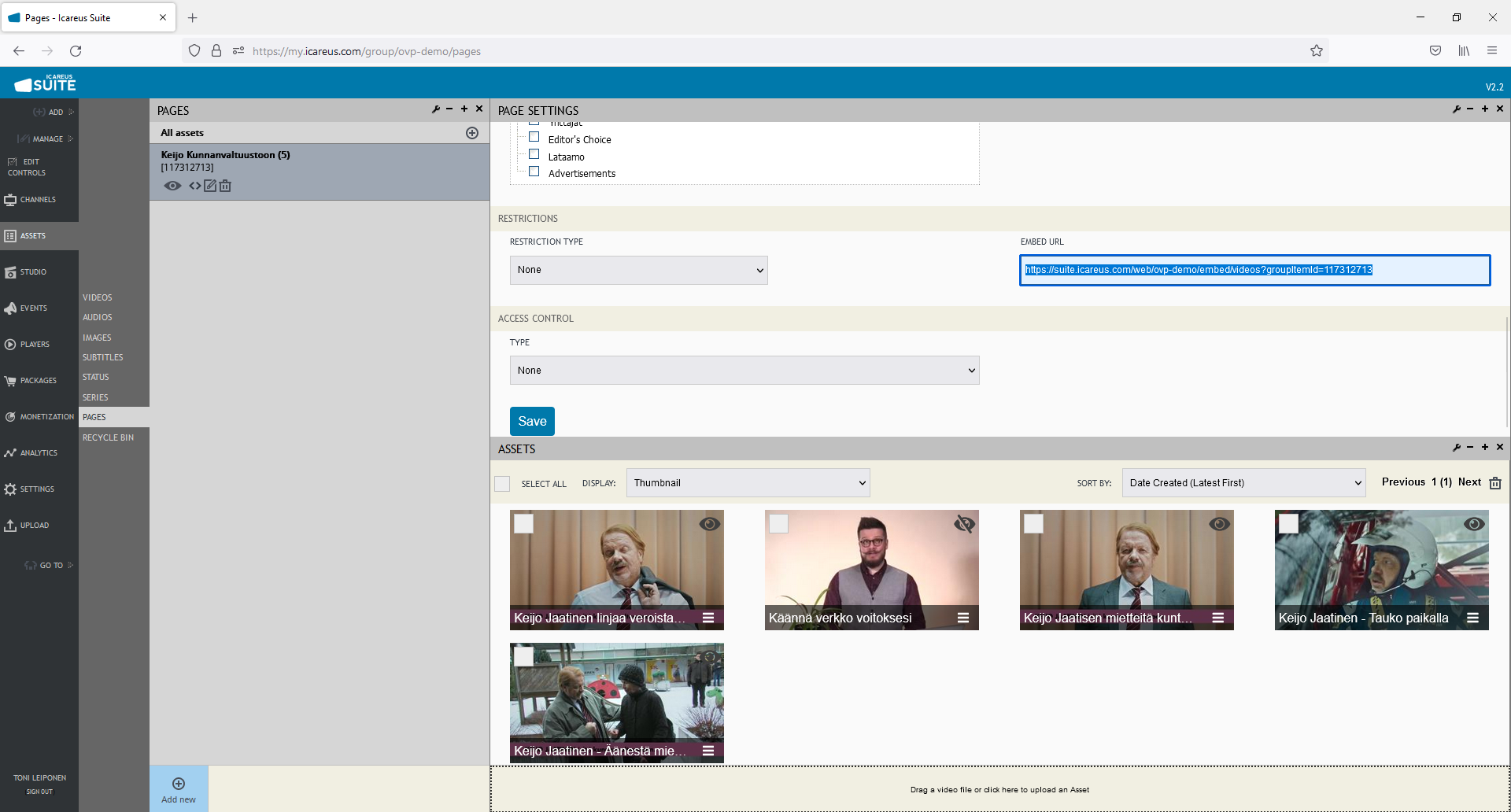 Open your MyIcareus account, go to Assets -> Videopages and select the videopage, which you want to embed: