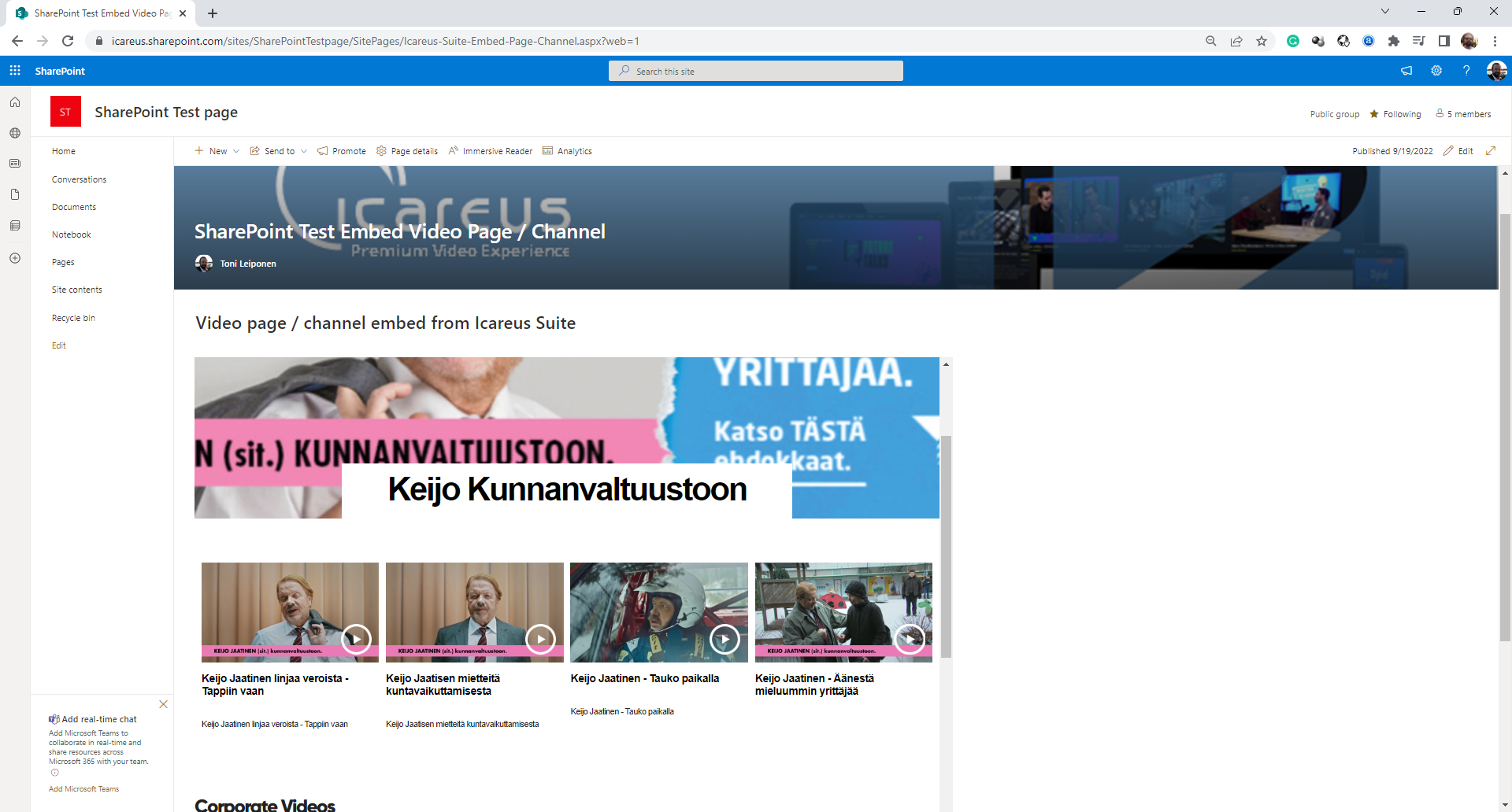 Introduction Microsoft Sharepoint is the largest and most used knowledge sharing environment for organizations and teams. Icareus Video Cloud can be used for managing and publishing videos on SharePoint. Embedding videos/video pages to SharePoint ...