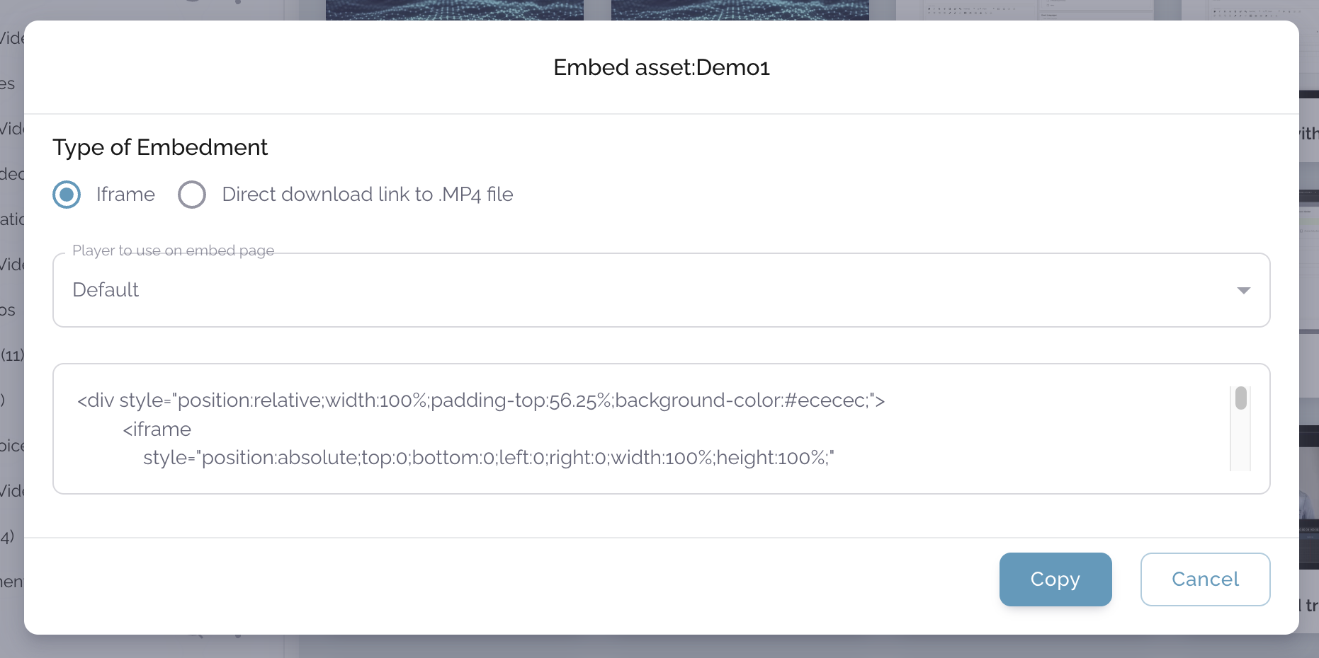 Otherwise just click the "Copy" button to copy the embed code and close the modal: