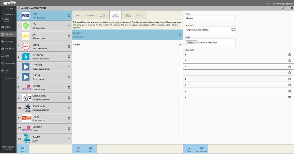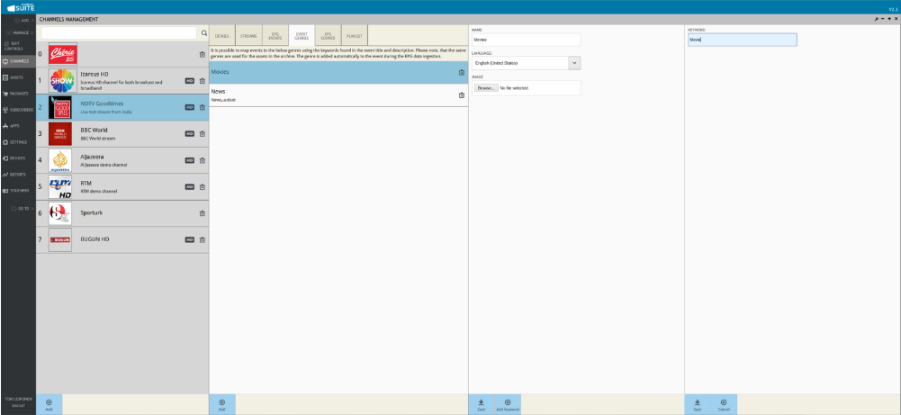 After you have created the event genre, you need to add keywords to that event genre, so that the filter can work and find the correct EPG events from the data.