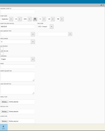 When there are not many daily events, it is possible to create and maintain those manually. To add the EPG Event you need to click the 'Add' button under the middle section. The following info is required on the form: