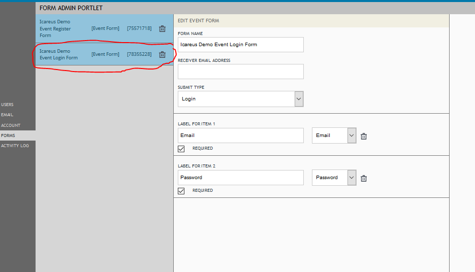 The account administrator can create a custom Event form to give access to the event. There are two ways to utilize custom forms: