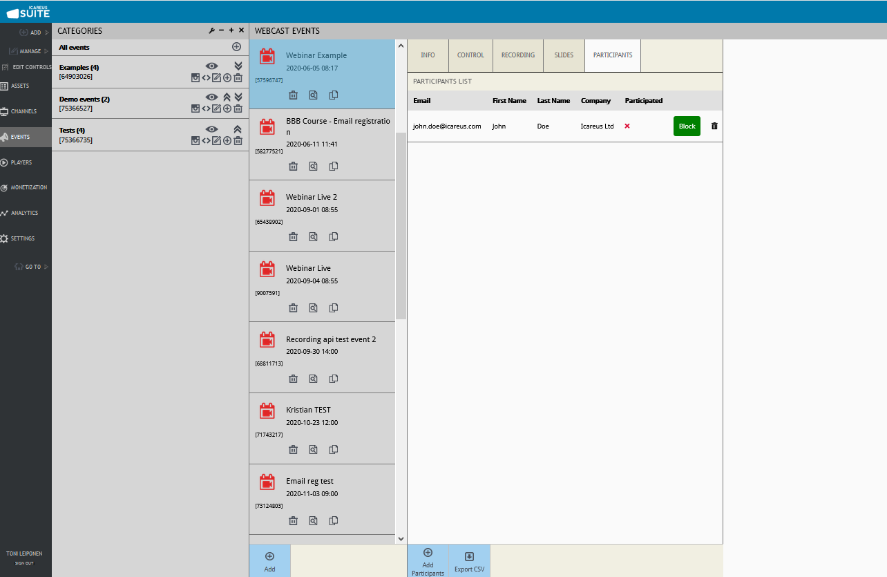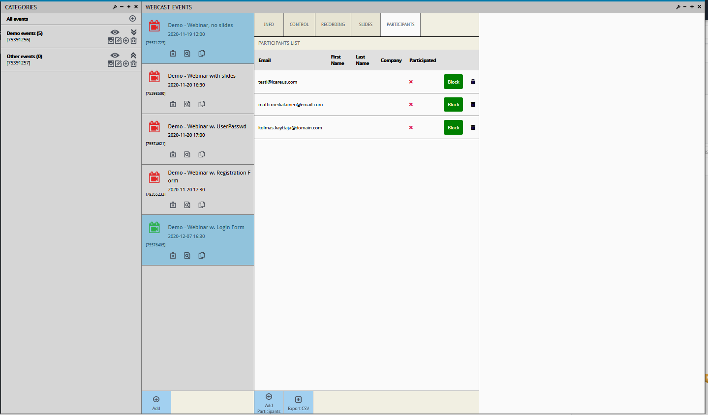 If wanted, the list of participants can also be exported as CSV for further use.