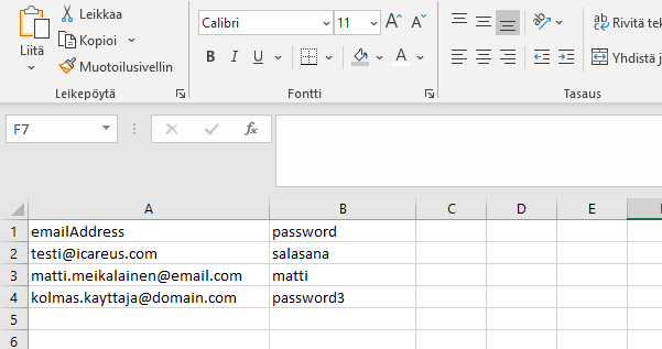 You can get the example file from your Icareus contact.