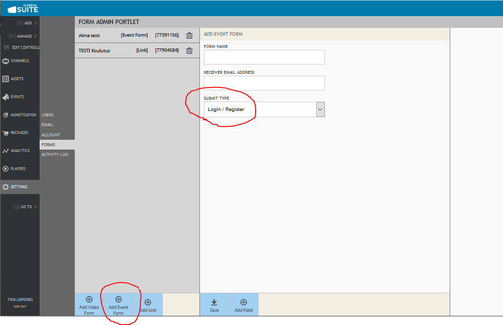 1. Select "Add Event Form"