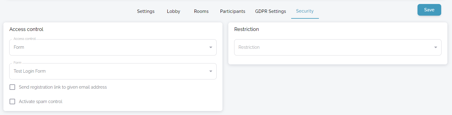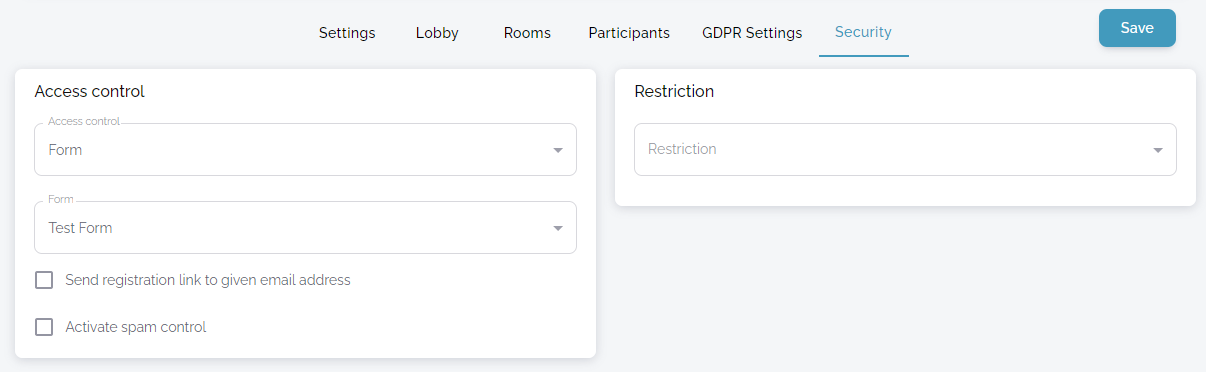 Then, return back to your event and select the correct Form from Access Control. The click "Save" to save the new event settings: