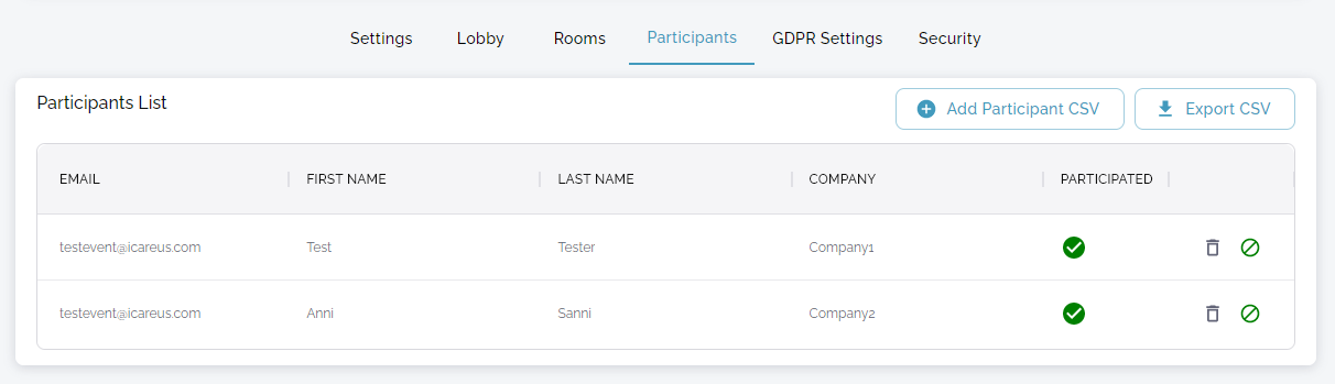 If wanted, the list of participants can also be exported as CSV for further use.