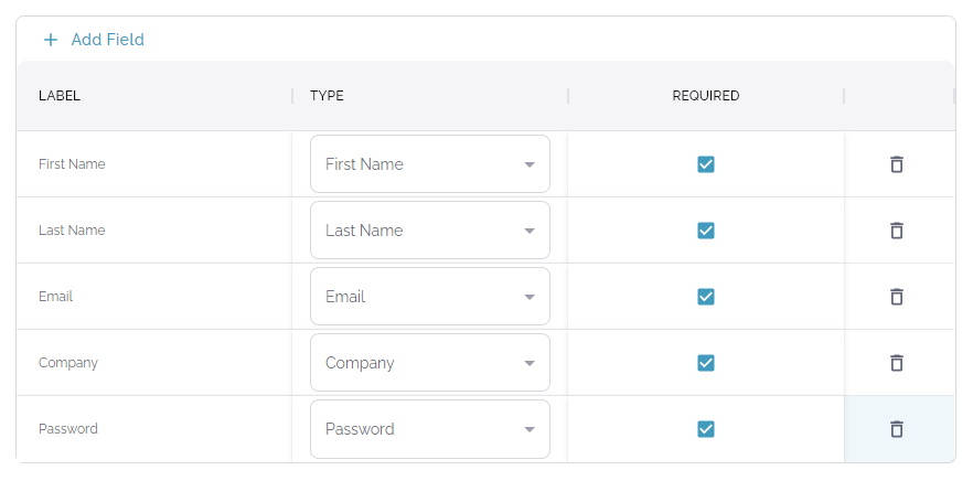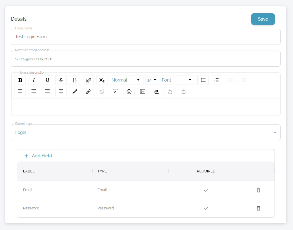 - Add form fields by clicking "Add Field".