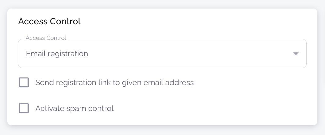 It is possible to restrict access to the event based on different methods of access control. Currently only one type of access control can be set on a single event. Different types of access control currently supported are: