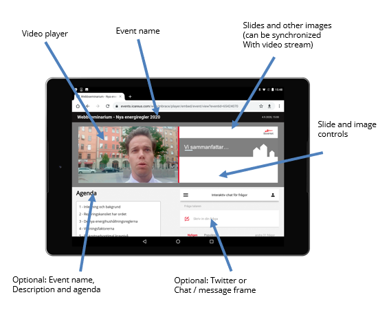 Icareus Event and Webinar solution provides easy tools to anybody to configure both the functions of the Event and Webinar player. The main fuctions are:
