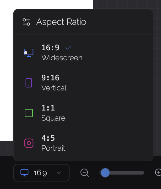 Use the aspect ratio selector (e.g., 16:9) to define the video’s dimensions.