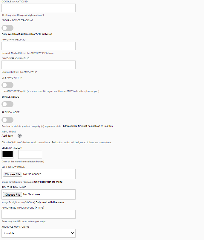 Use AMVG Opt-in | Checkbox | Activates AMVG opt-in. Will direct users to use AMVG opt-in. This will create a cookie to users television. |