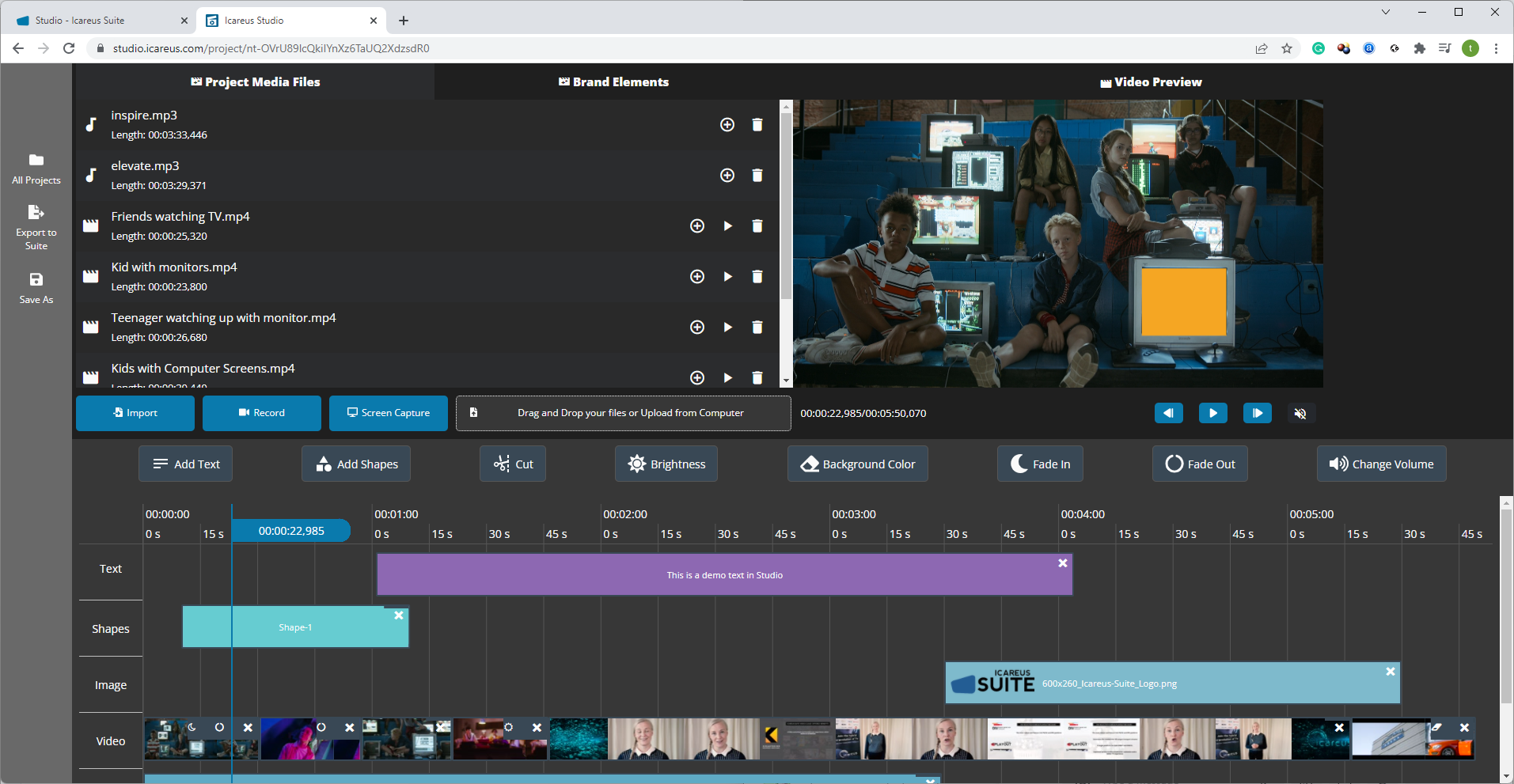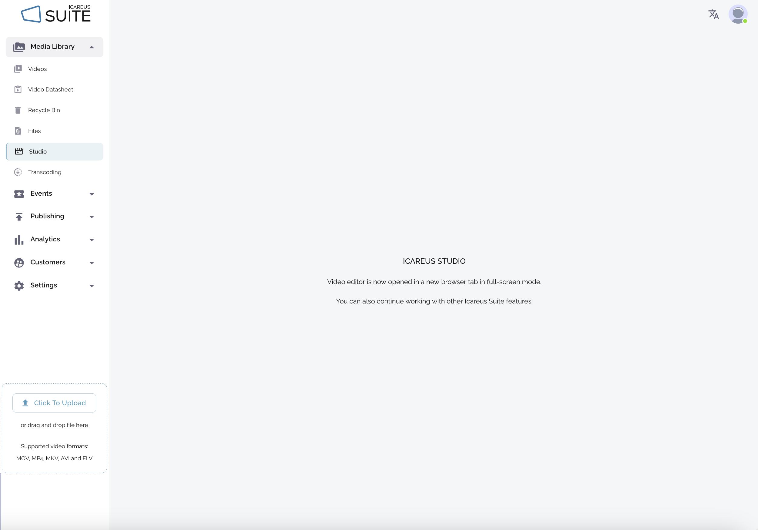 Icareus Studio is an easy-to use browser based video editor tool for all the marketing, communication, training and video content people that want to produce branded video content fast in Icareus Suite video cloud environment easily and fast without need to upload a video to local computer or learning to use complex video editors.