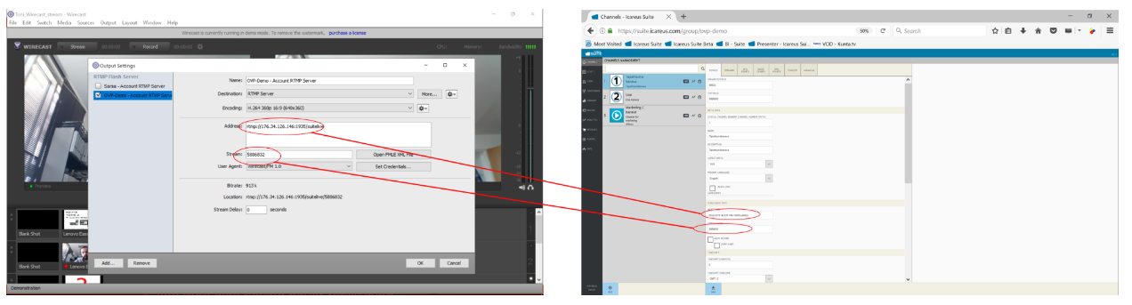 - Wirecast/FMS r --> channel's rtmp ingest point on Suite cloud -> Icareus Suite Live video or Webinar player -page