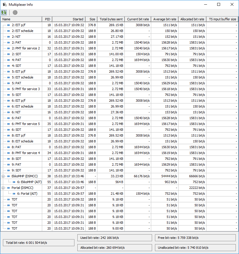 After applications are atatched to sevice(s) and started, it is possible to see some useful data about them by opening "Multiplexer Info" dialog; Status -> Multiplexer Info.