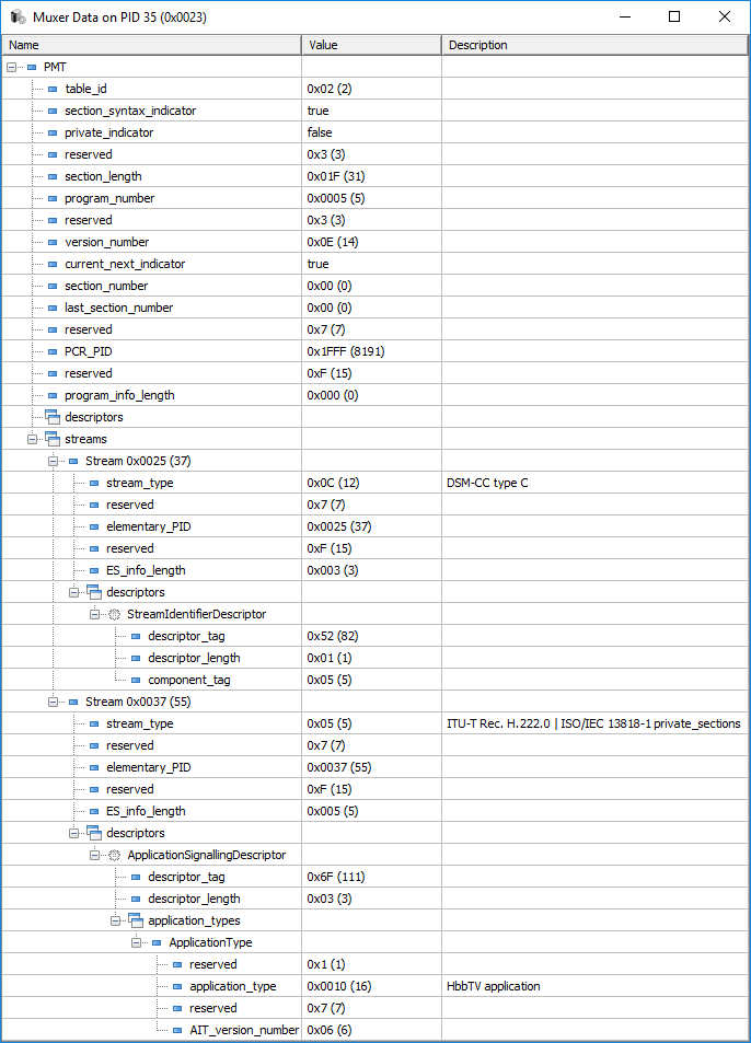 Now the "magic-bit" can be edited by adding an "Application signalling descriptor". That can be done by clicking the right hand mouse button for "PMT stream descriptots" and choosing "Add descriptor" from popup.