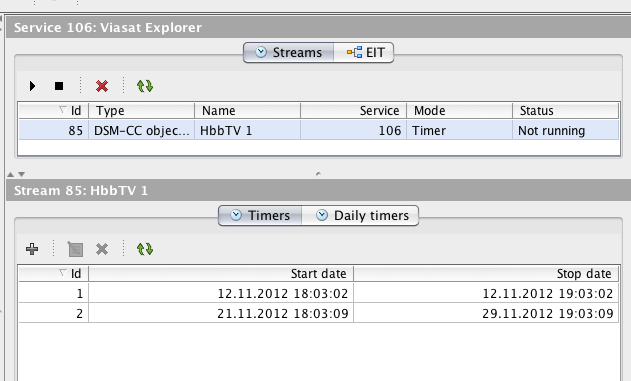 The broadcasting of the Carousels is managed per DVB Service and utilizing timers it may be fully automated and controlled also from 3rd party systems.