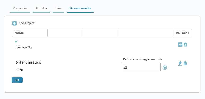 Periodic sending mechanism sends a single DIN stream event between the configured seconds.