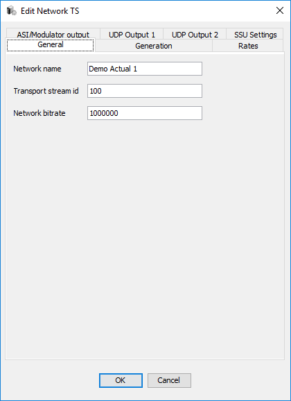 Table Generation defines the PSI/SI and EIT tables that are generated for this network. From the tab, it is possible configure different PSI/SI tables generation. Generate PAT reference to NIT: Add PAT reference to NIT Generate PMT: Enables generation of Program Map Table. Generate NIT: Enables generating Network Information Table. Generate NIT descriptors :