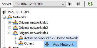 A Network and it's Actual subnetworks are added using the Networks -tree by right clicking the root of the tree as shown in the image below.