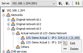 In the picture below two Actual subnetworks has been created with transport stream IDs 100 and 101.