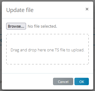 If uploaded OTA SSU TS file is not valid, this alert is displayed:When a valid file is uploaded, the modal looks like this:
