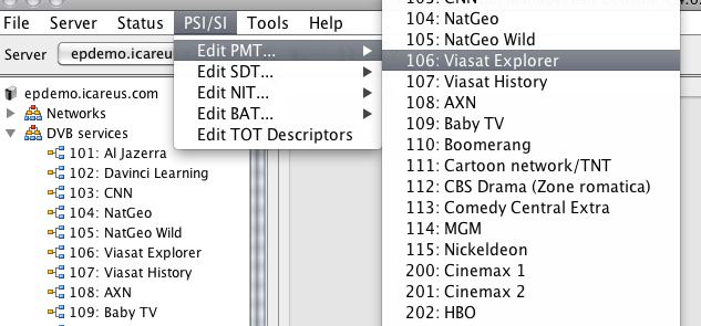 Icareus Playout server’s PSI/SI generation generates all related tables: