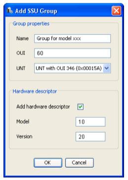 To edit UNT target and operational descriptors for an SSU carousel group, select the carousel from server tree and then select the Groups tab. Right click on a group and select Edit Target Descriptors or Edit Operational Descriptors. An editor dialogue will appear, for more information about using the editor, see Editing PSI/SI Data Structures.
