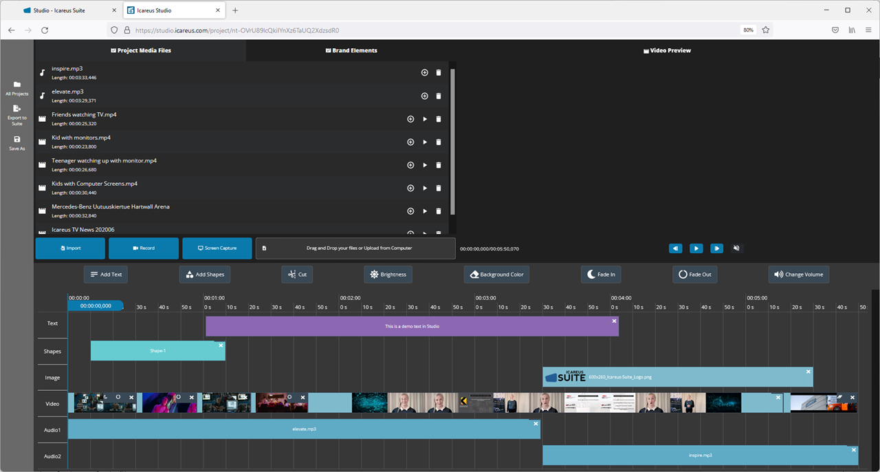 Icareus Studio is an easy-to use browser based video editor tool for all the marketing, communication, training and video content people that want to produce branded video content fast in Icareus Suite video cloud environment easily and fast without ...