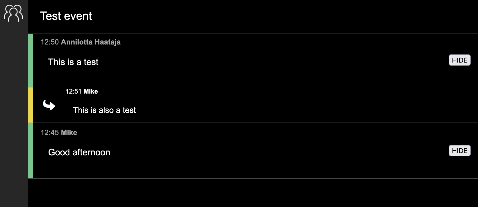 When the event is over, and admin does not want users anymore to see the event messages on event view or on hybrid event message board, the admin can turn on the "Hide Messages" function in the admin menu.