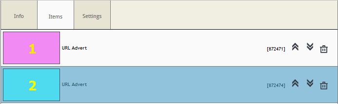 Microsite items. Up Arrow, Down Arrow, Remove button