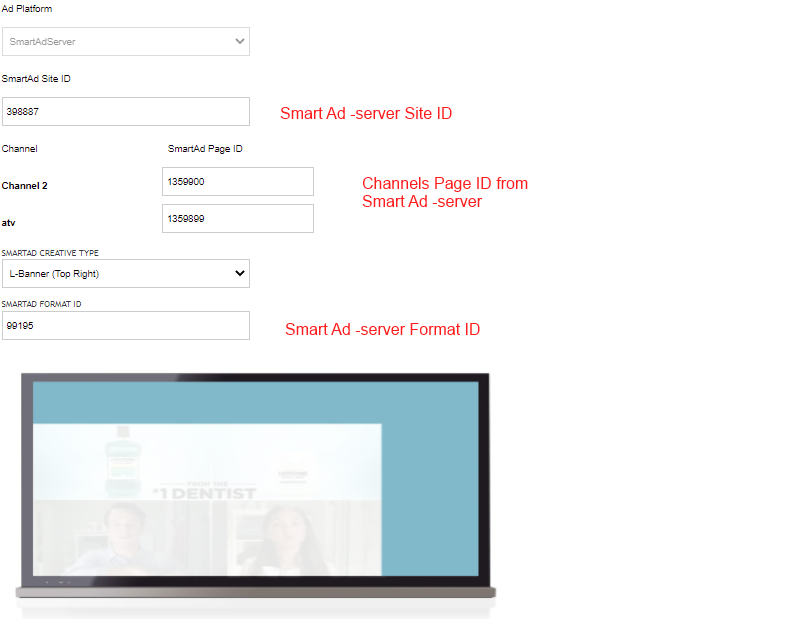 Put SiteId from Smart Ad -server to 'Smart Ad SiteID'.