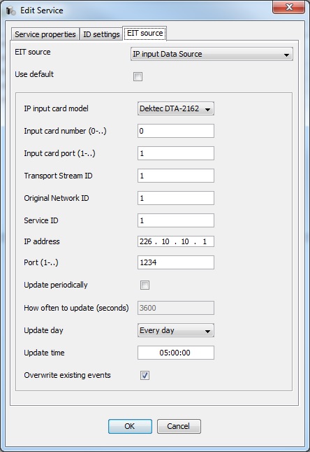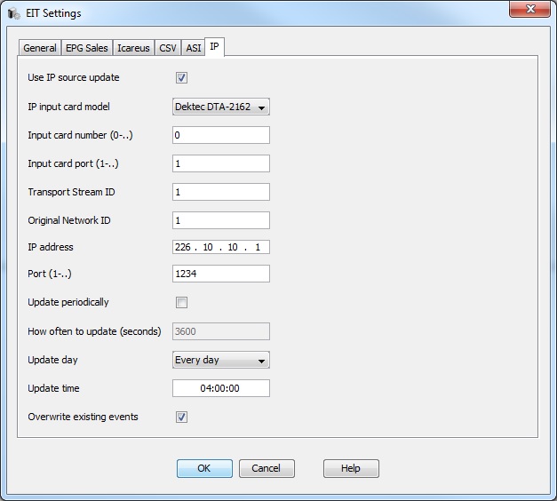 To define general settings for the IP Input Data source select menu "Server -> Settings -> EIT -> IP".