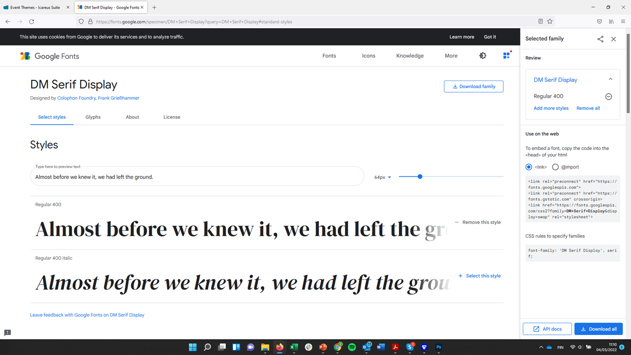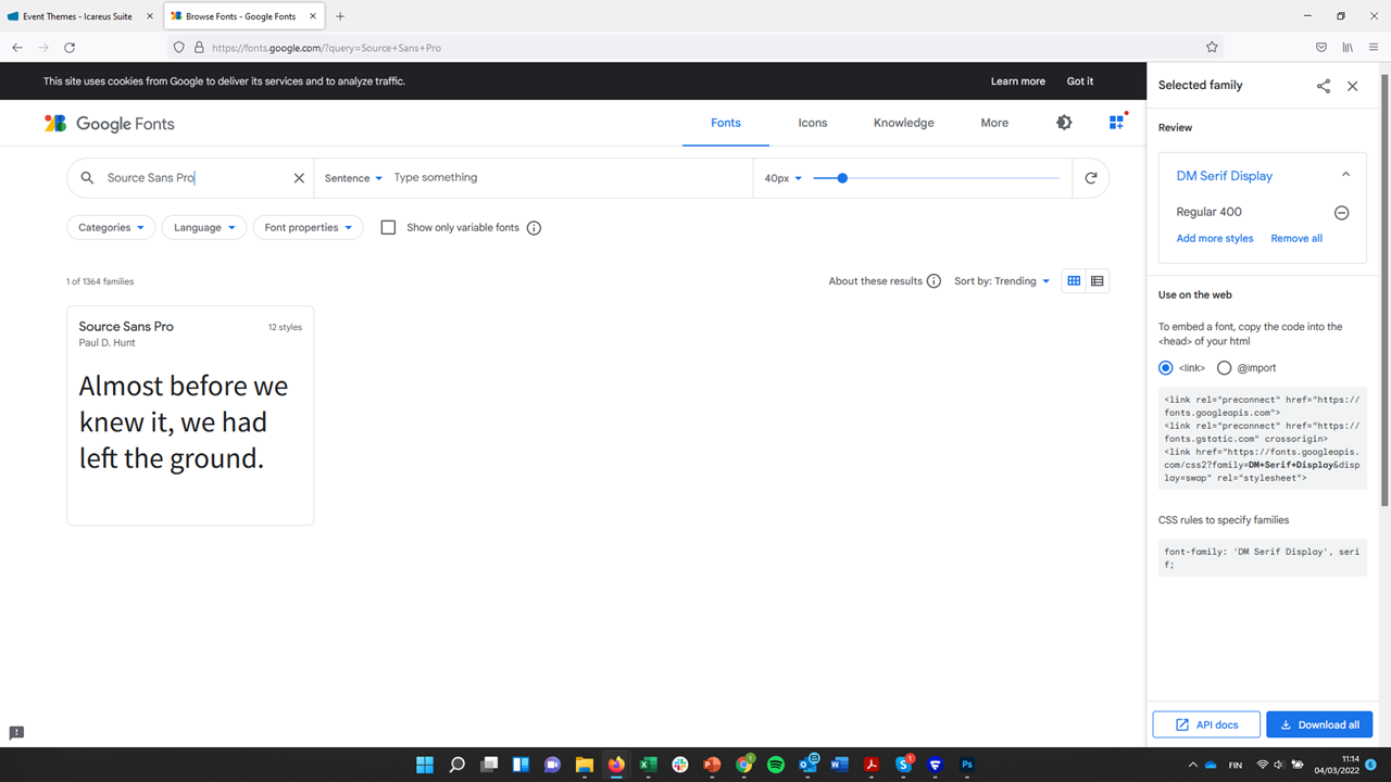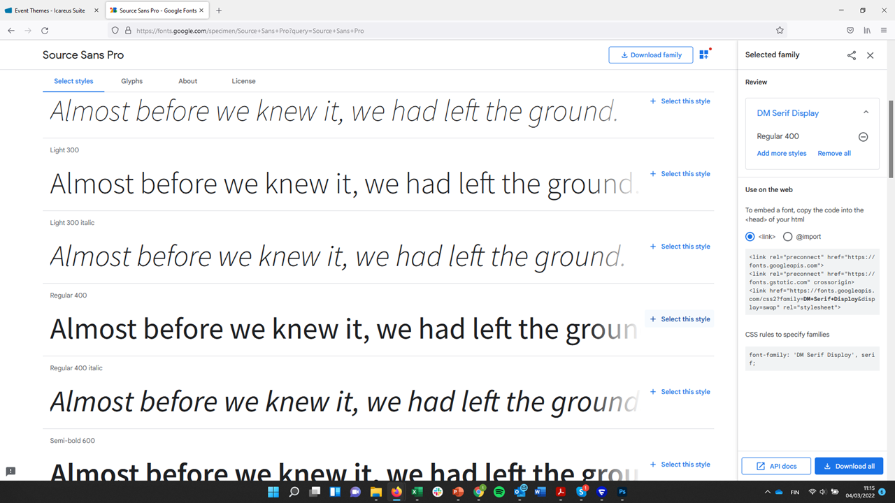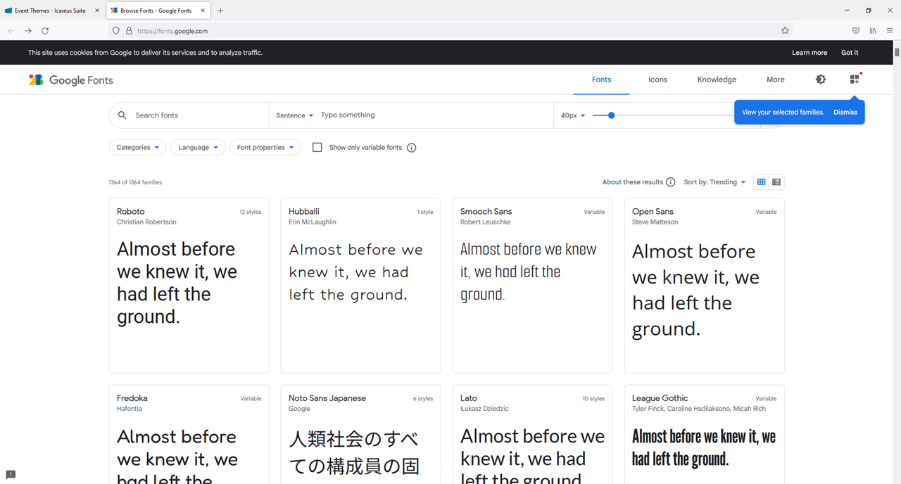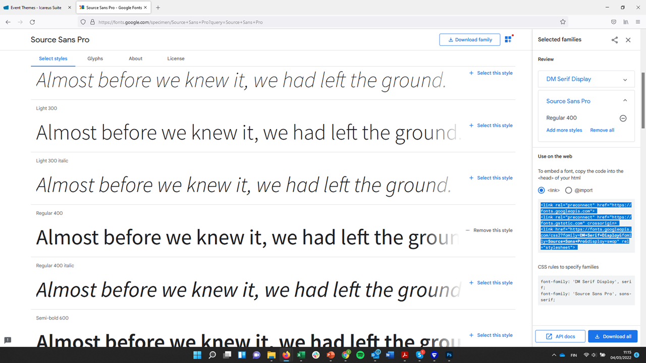 If you want to use two or more Google Fonts with your event theme, you can add more fonts in following way.