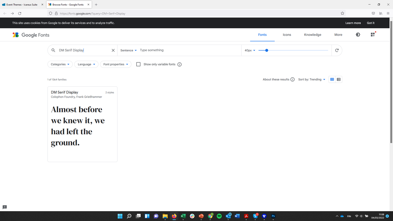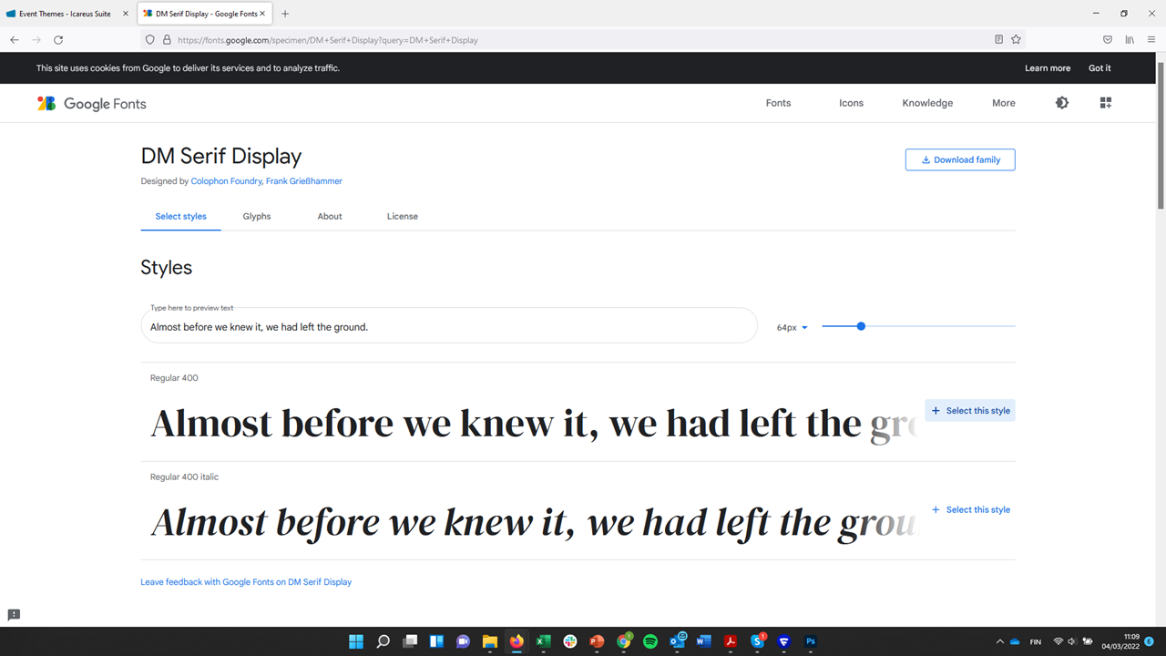 Search the wanted to Google Font with Search tool (e.g. "DM Serif Display" like in example):