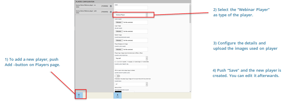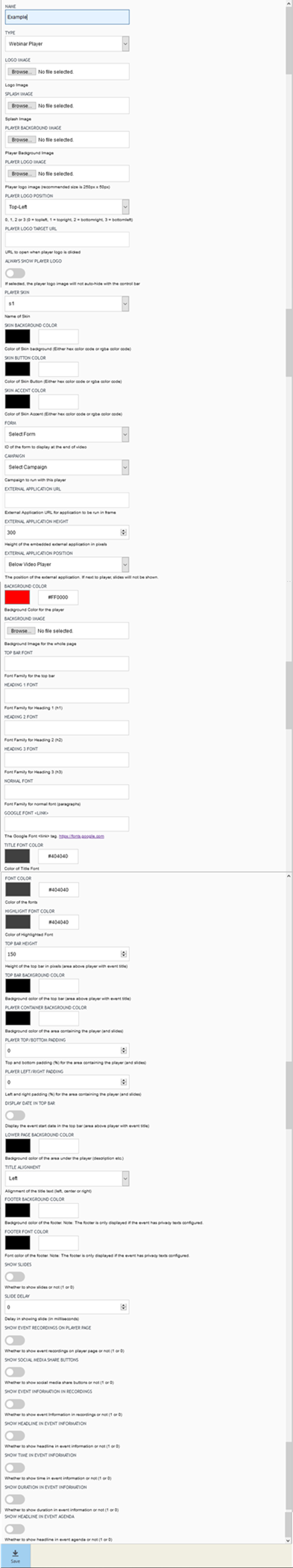 Name* | Text Input | Name of the created player. Displayed in the list of players when creating or editing Webinar Events. |
