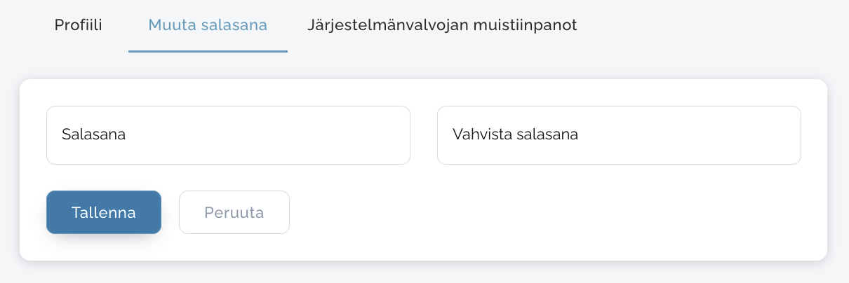 Vaihda salasana kirjoittamalla uusi salasana kahteen kenttään ja napsauttamalla niiden alla olevaa Tallenna-painiketta.