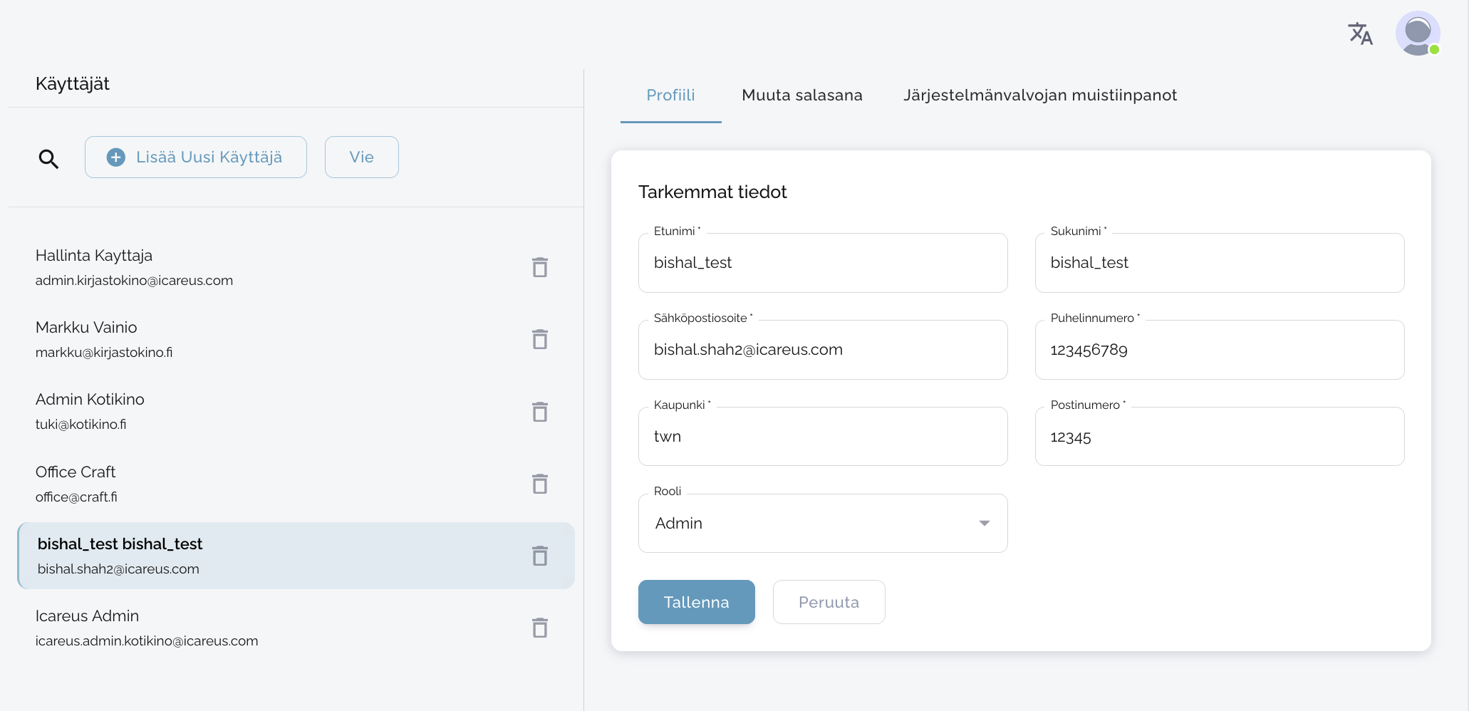 Käyttäjä lisätään käyttäjäluetteloon ja hän saa salasanan sisältävän vahvistussähköpostin.