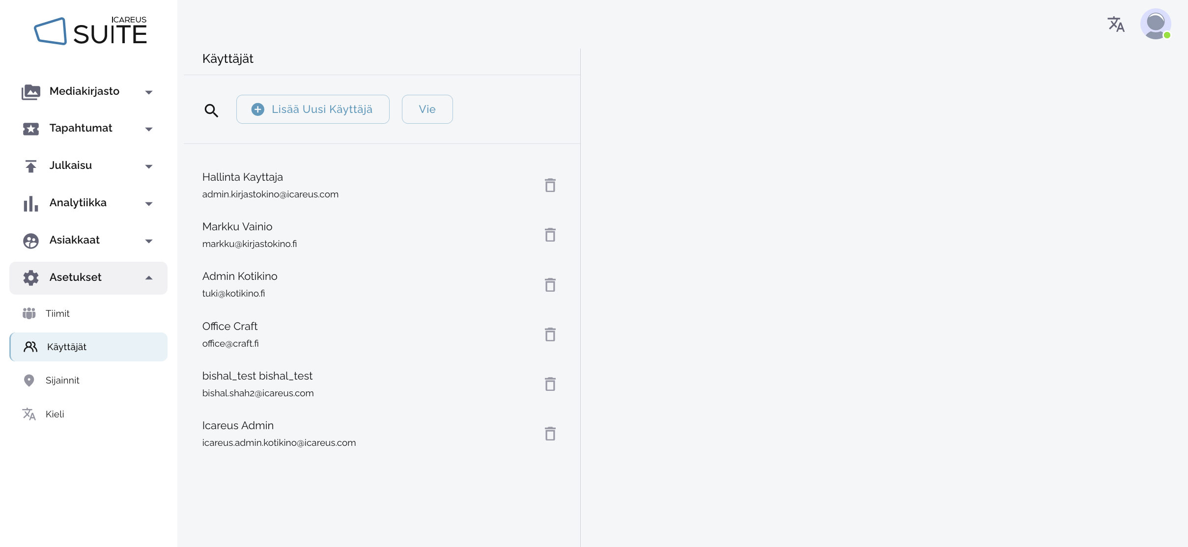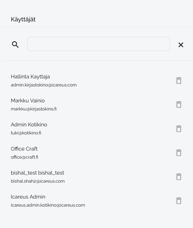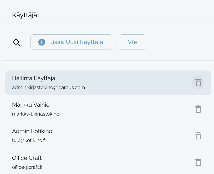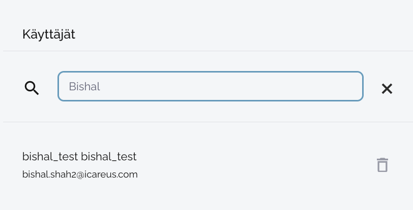 Voit poistaa käyttäjän napsauttamalla roskakorikuvaketta käyttäjänimen oikealla puolella.