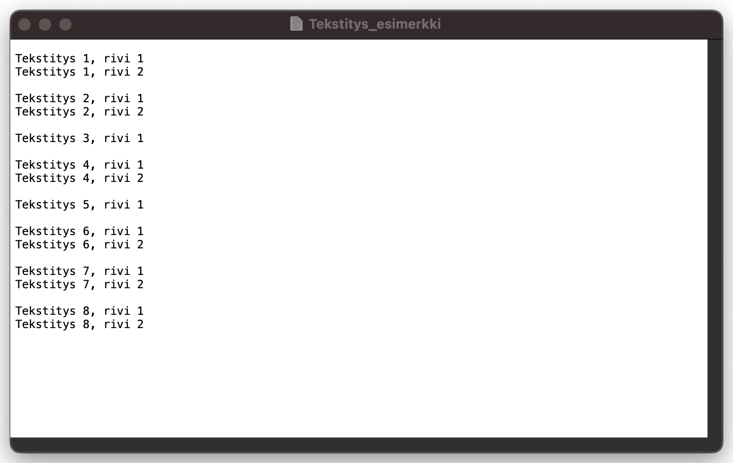 Tyhjä rivi = Seuraava rivi aloittaa uuden tekstityksen