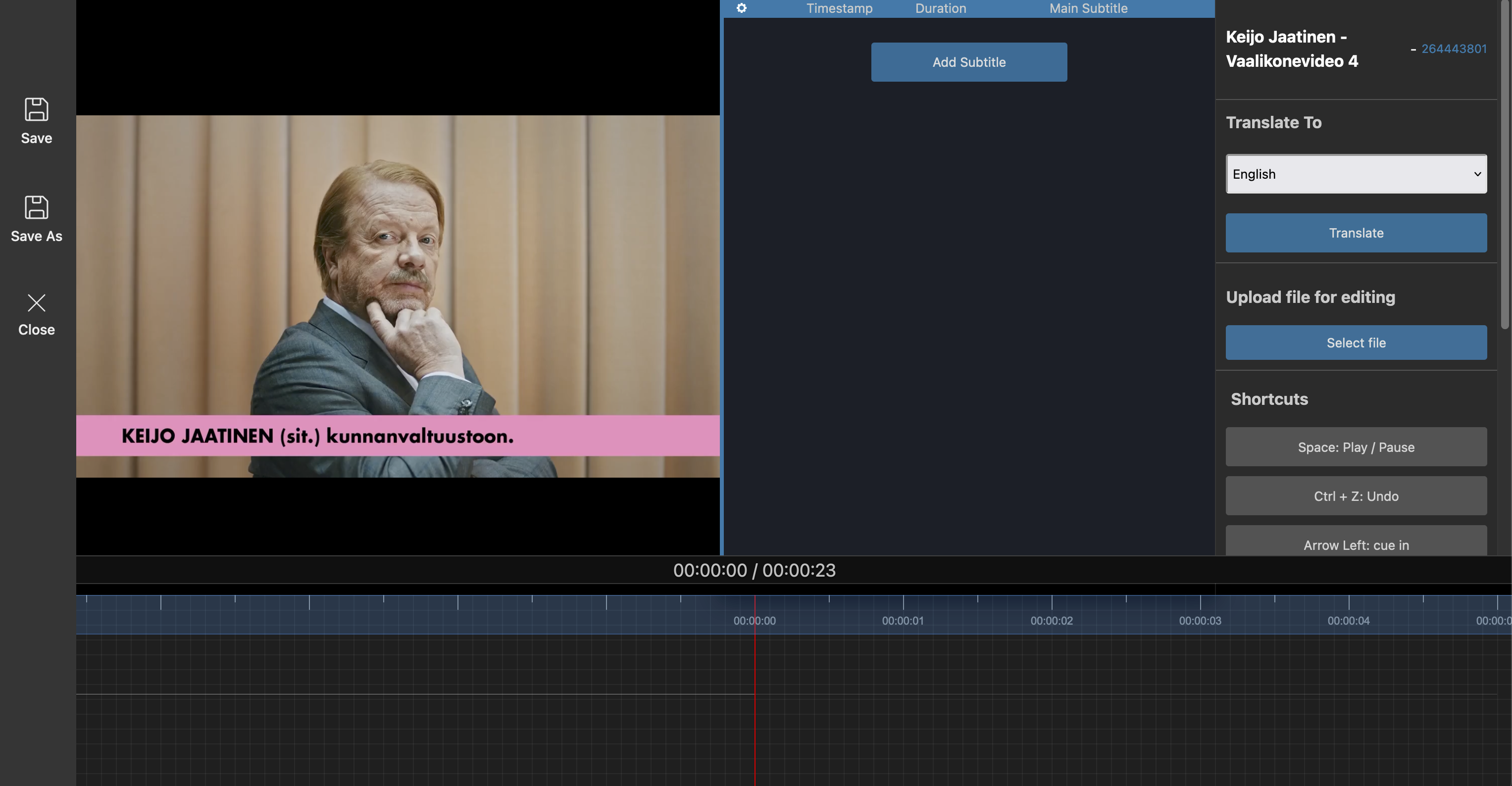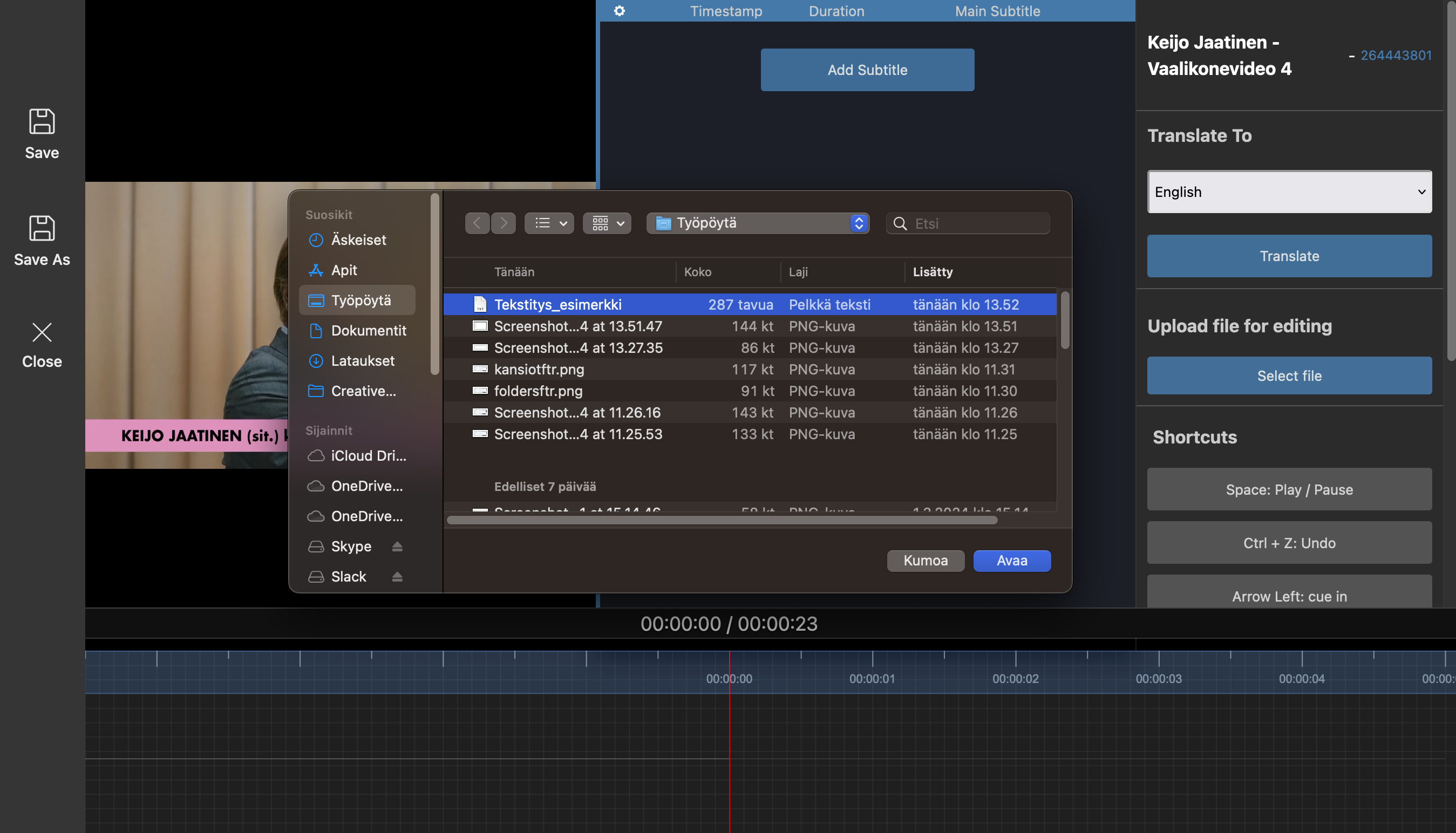 Tämän jälkeen voit muokata tekstityksiä ja ajoitusta.