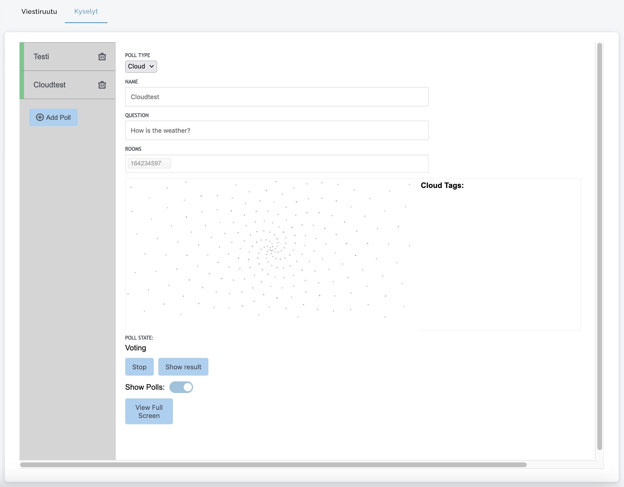 Kun osallistuja napsauttaa "Näytä pilvi", Word Cloud tulee näkyviin: